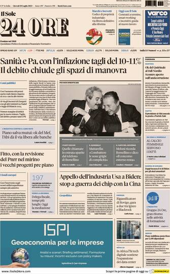 Il Sole 24 Ore: apertura con titolo "Sanità e Pa, con l'inflazione tagli del 10-11%. Il debito chiude gli spazi di manovra"