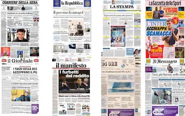Aperture dei quotidiani dedicate allo scontro governo-opposizioni per la revoca a 169mila famiglie del reddito di cittadinanza. Sindaci e Cgil in subbuglio. Spazio anche al calo del Pil (-0,3%). Sui quotidiani sportivi spazio all'Inter che vira su Scamacca e al Chelsea che apre allo scambio Vlahovic-Lukaku