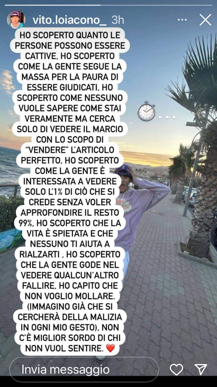 Ha scritto un lungo post in una storia sui social, Vito Loiacono, uno dei ragazzi di The Borderline, il gruppo di youtuber coinvolto nell'incidente in zona Axa nel quale è morto il piccolo Manuel, 5 anni, a bordo di una Smart insieme alla mamma e alla sorellina di 3 anni. Nessun pentimento, solo recriminazioni.“Ho scoperto quanto le persone possano essere cattive. Ho scoperto come la gente segue la massa per la paura di essere giudicata. Ho scoperto come nessuno vuole sapere come stai veramente ma cerca solo di vedere il marcio con lo scopo di vendere l'articolo perfetto. Ho scoperto come la gente interessata a vedere solo l'1% di ciò che si crede senza voler approfondire il resto 99%. Ho scoperto che la vita è spietata e che nessuno ti aiuta a rialzarti ho scoperto che la gente gode nel vedere qualcun altro fallire ho capito che non voglio mollare. (Immagino già che si cercherà della malizia in ogni mio gesto). Non c'è miglior sordo di chi non vuol sentire”.