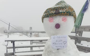 Neve sulla Marmolada, un pupazzo di neve augura "Buon Natale"