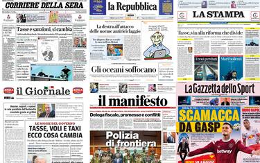 Aperture dei principali quotidiani sul via libera definitivo alla Camera alla delega fiscale. Spazio anche al caso sul dossieraggio e al cambiamento climatico. Sui quotidiani sportivi tiene banco il calciomercato