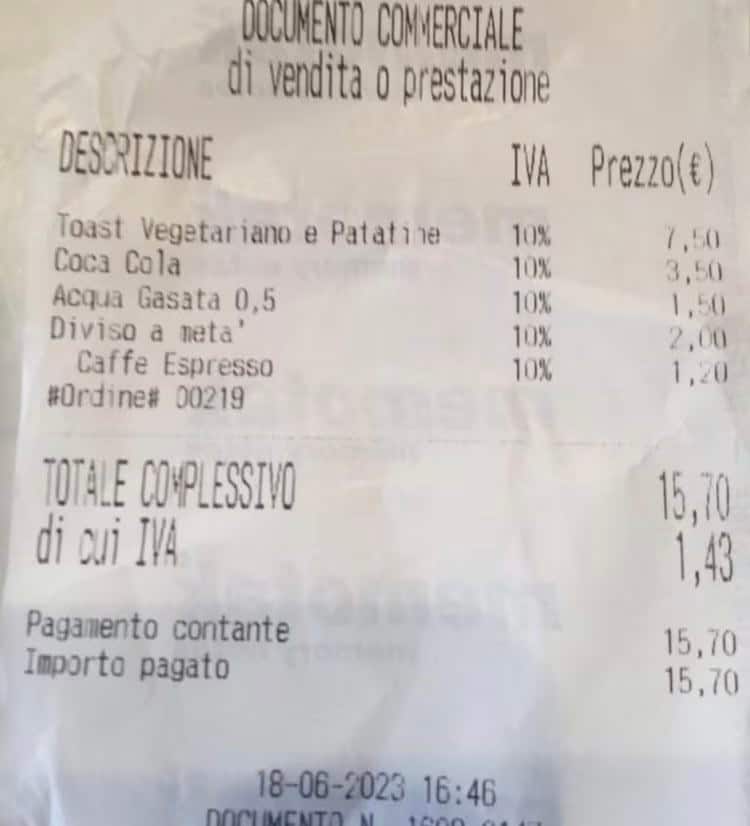 Il cliente ha postato la foto dello scontrino con il supplemento, ma il gestore si è giustificato: “Ho usato due piattini”