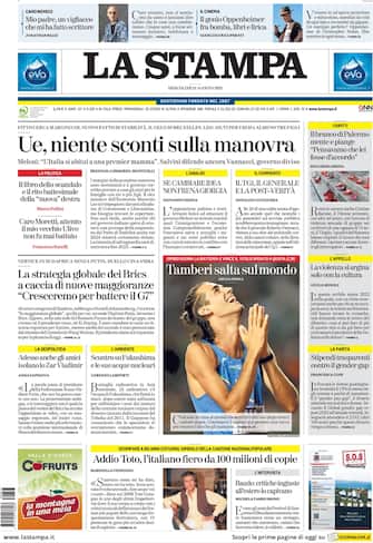 Aperture dei giornali dedicate all'allarme su Europea e conti. Fitto sul patto di Stabilità: non si torna indietro. Spazio anche alla morte, all'età di 80 anni dopo una lunga malattia, di Totò Cutugno. E all'oro mondiale nel salto in alto di Gianmarco Tamberi: a Budapest dà continuità all'oro olimpico del 2021 conquistato a Tokyo