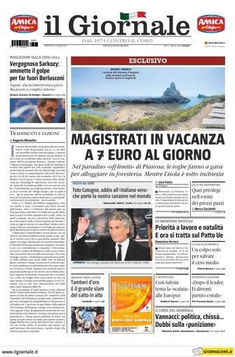 Il Giornale: apertura con titolo "Magistrati in vacanza a 7 euro al giorno". Nel paradiso off-limits di Pianosa, le toghe fanno a gara per alloggiare in foresteria. Mentre l'isola è sotto inchiesta