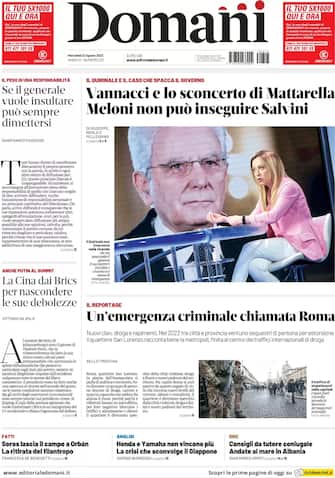 Domani: apertura con titolo "Vannacci e lo sconcerto di Mattarella. Meloni non può inseguire Salvini". Spazio a "Un'emergenza criminale chiamata Roma"