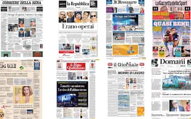 Nelle prime pagine dei quotidiani spazio alla tragedia dei cinque operai morti dopo essere stati travolti da un treno a 100 km orari mentre stavano lavorando sui binari della Torino-Milano. Sergio Mattarella: "Morire sul lavoro è un oltraggio ai valori della convivenza". Sui giornali sportivi spazio ai sorteggi di Champions e alla sfida Roma-Milan di stasera con il debutto di Lukaku in giallorosso