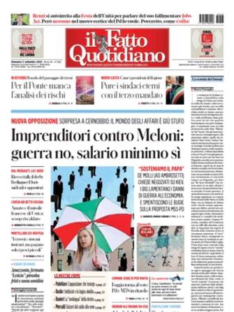 "Imprenditori contro Meloni: guerra no, salario minimo sì" è l'apertura del Fatto Quotidiano