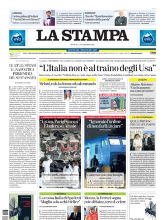 La Stampa apre con un'intervista al ministro della Difesa Crosetto: "L'Italia non è al traino degli Usa"