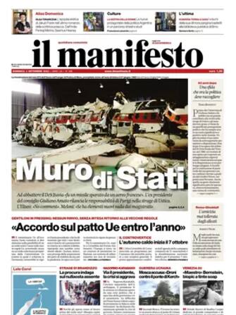 "Muro di Stati" è il titolo del Manifesto sulle rivelazioni sulla strage di Ustica