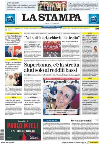 La Stampa: apertura con titolo "Superbonus, c'è la stretta aiuti solo ai redditi bassi". Pnrr, Fitto non convince la Ue: dubbi sulla riforma della giustizia e appalti