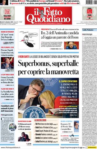 Il Fatto Quotidiano: apertura con titolo "Superbonus, superballe per coprire la manovretta". La legge di bilancio è senza soldi per altri motivi