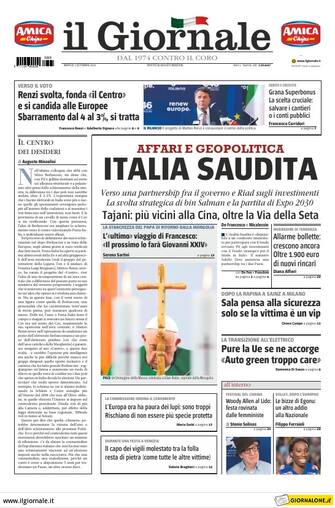 Il Giornale: apertura con titolo "Italia saudita". Verso una partnership fra il governo e Riad sugli investimenti. La svolta strategica di bin Salman e la partita di Expo 2030