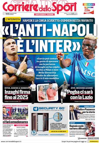 Corriere dello Sport: apertura con titolo "L'anti-Napoli è l'Inter". Hamsik e la corsa scudetto: Osimhen resta favorito