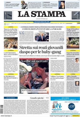 La Stampa: apertura con titolo "Stretta sui reati giovanili, daspo per le baby gang". Dai 14 anni via il cellulare ai violenti, carcere per chi non manda i figli a scuola