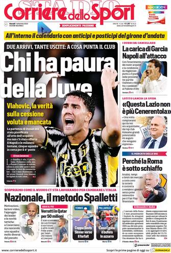 Corriere dello Sport: apertura con titolo "Chi ha paura della Juve". Due arrivi, tante uscite: a cosa punta il club