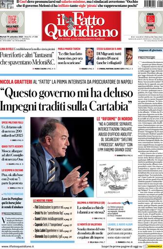 - Apertura con titolo "Questo governo mi ha deluso: impegni traditi sulla Cartabia". Al Fatto la prima intervista da procuratore di Napoli
