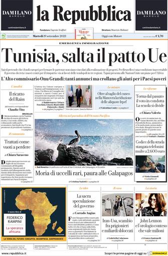 Su molti giornali aperture dedicate all'emergenza migranti e alle nuove norme varate dal Cdm. Focus de La Repubblica sul patto a rischio tra l'Ue e il presidente tunisino Saied, "pretende che i fondi europei per fermare le partenze non siano vincolati alla realizzazione di progetti"