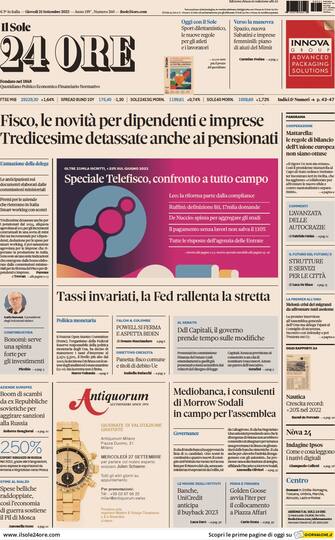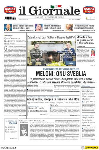 - Apertura con titolo "Meloni: Onu sveglia". La premier alle Nazioni Unite: "Non potete tollerare la nuova schiavitù". E sulla sua assenza alla cena con Biden: "Lavoravo"