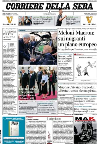 - Apertura con titolo "Sbarchi, tolleranza zero". Meloni-Macron, alleati contro l'invasione. Stretta nel decreto: espulso chi mente sull'età