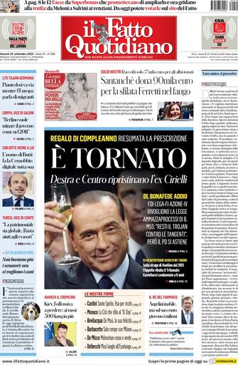 - Apertura con titolo "E' tornato". Riesumata la prescrizione. Destra e Centro ripristinano l'ex Cirielli