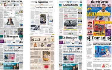 Aperture dei giornali dedicate alla manovra e alle parole di Giorgetti: "Ora scelte difficili". Spazio anche al duello giudici-governo sui migranti: il tribunale di Catania non applica il decreto sui trattamenti e libera tre tunisini a Pozzalo. Sui quotidiani sportivi spazio alle vittorie di Milan, Inter e Napoli contro Lazio, Salernitana e Lecce