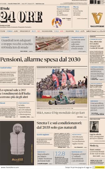 - Dedica l'apertura al tema delle pensione e lancia l'allarme per la spesa previdenziale a partire dela 2030. Nel taglio centrale lo Spread che sale oltre quota 200 facendo salire i rendimenti in Italia