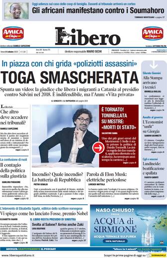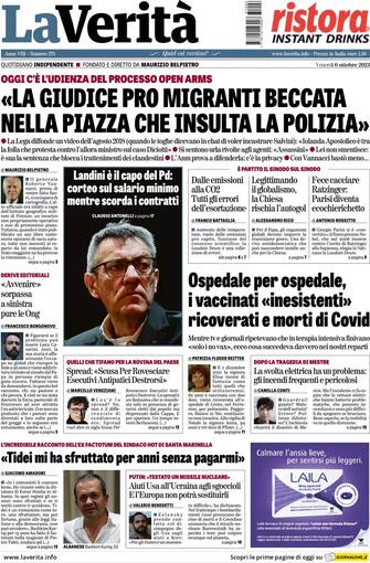 - Dedica l'apertura alla pubblicazione del video che ritrae la giudice Apostolico ad un corteo nel 2018. Nella fotografica l'attacco a Toninelli, l'ex ministro su Mestre ha parlato di “morti di Stato”