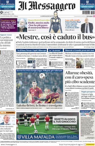 - “Mestre, così è caduto il bus”, è il titolo di apertura del quotidiano che riporta le parole di un testimone dell'incidente. Nella fotografica la Roma che vince il match di Europa League