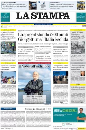 - Dedica l'apertura di oggi all'economia con il rialzo dello spread che supera la quota dei 200 punti, ma Giorgetti rassicura: “L'Italia è solida”. Nella fotografica il premio Nobel per la letteratura al norvegese Jon Fosse