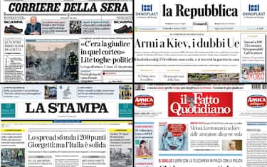 I quotidiani di oggi dedicano le loro aperture al video pubblicato da Matteo Salvini che ritrae la giudice Apostolico mentre nel 2018 partecipa ad un corteo di protesta durante il quale vengono lanciati slogan contro la polizia. Tra gli altri argomenti c'è la guerra in Ucraina con i dubbi sull'invio di nuove armi e l'economia con il rialzo dello spread