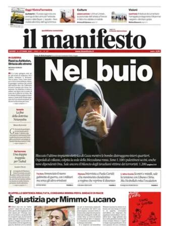 - "Nel buio" è il titolo del Manifesto in relazione agli impianti elettrici bloccati a Gaza