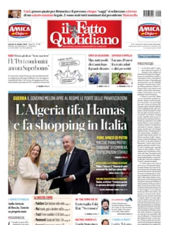 - "L'Algeria tifa Hamas e fa shopping in Italia. Il governo Meloni apre al regime le porte delle privatizzazioni" è il titolo del Fatto Quotidiano