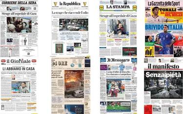 - Apertura con titolo "Strage all'ospedale di Gaza". Il ministero della Salute palestinese: "Ci sono centinaia di morti". Israele respinge le accuse: "Sono stati i razzi di Hamas"