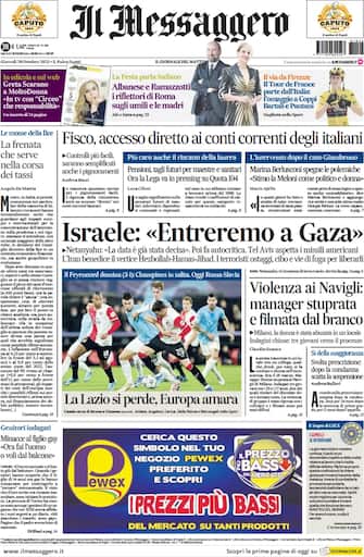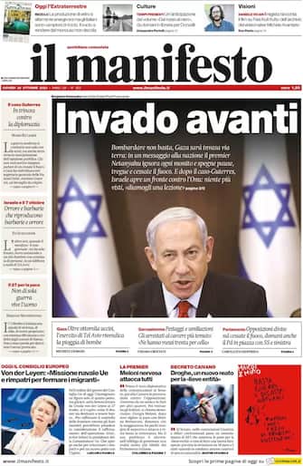 - Apertura con titolo "Invado avanti". Bombardare non basta, Gaza sarà invasa via terra: in un messaggio alla nazione il premier Netanyahu ignora ogni monito e spegne pause, tregue e cessate il fuoco