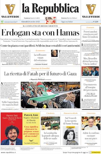 - Apertura con titolo "Israele prepara l'invasione". Netanyahu: gli ostaggi priorità. Erdogan choc: "Hamas? Sono dei liberatori"