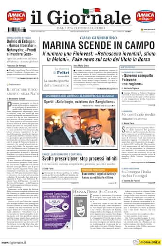 - Apertura con titolo "Marina scende in campo". Il numero uno Fininvest: "Retroscena inventati, stimo la Meloni". Fake news sul calo del titolo in Borsa