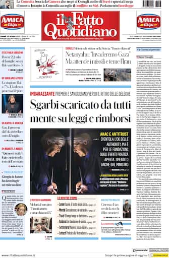 - Apertura con titolo "Sgarbi scaricato da tutti mente su leggi e rimborsi". Premier e Sangiuliano verso il ritiro delle deleghe