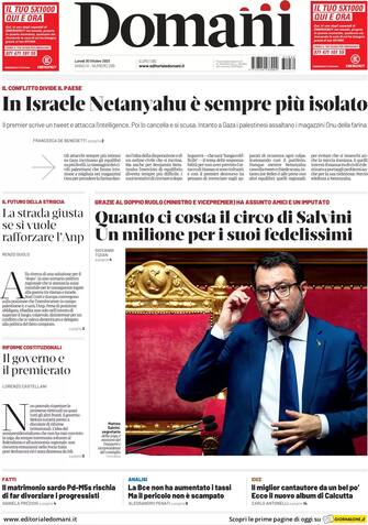 - Apertura con titolo "In Israele Netanyahu è sempre più isolato". Spazio a "Quanto ci costa il circo Salvini. Un milione per i suoi fedelissimi"