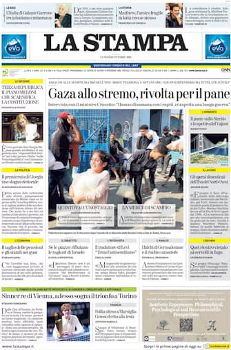 - Apertura con titolo "Gaza allo stremo, rivolta per il pane". Intervista con il ministro Crosetto: "Hamas disumana con i rapiti, ci aspetta una lunga guerra"