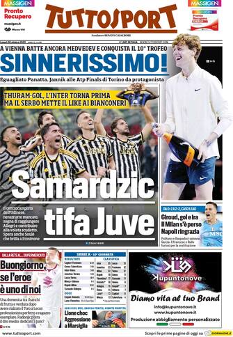- Apertura con titolo "Samardzic tifa Juve". Thuram-gol, l'Inter torna prima. Ma il serbo mette il like ai bianconeri
