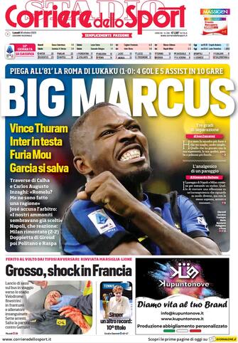 - Apertura con titolo "Big Marcus". Vince Thuram, Inter in testa. Furia Mou, Garcia si salva. I nerazzurri piegano la Roma all'81'