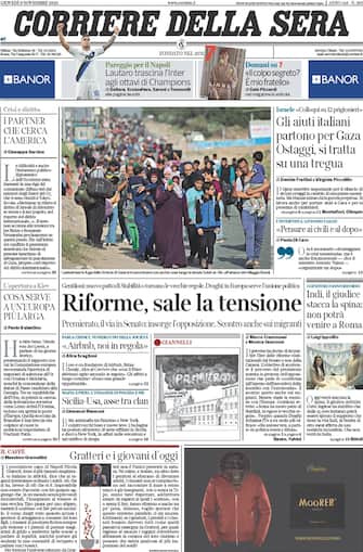 - Apertura con titolo "Riforme, sale la tensione". Premierato, il via in Senato: insorge l'opposizione. Scontro anche sui migranti