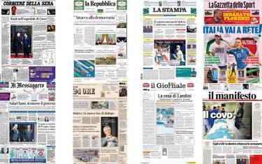 Aperture dedicate allo scontro tra Salvini e Landini. Passa la linea del ministro, la Cgil cede: sciopero dei trasporti di quattro ore. Spazio anche al raid nell'ospedale di Gaza. La trattativa: 50 ostaggi per tre giorni di tregua. Sui quotidiani sportivi si celebra ancora Jannik Sinner, stasera in campo contro Rune