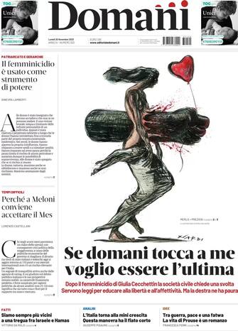 - Apertura con titolo "Se domani tocca a me, voglio essere l'ultima". Dopo il femminicidio di Giulia Cecchettin la società civile chiede una svolta. Servono leggi per educare alla libertà e all'affettività. Ma la destra ne ha paura
