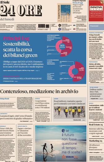 - Apertura con titolo "Sostenibilità, scatta la corsa dei bilanci green". Spazio a "Contenzioso, mediazione in archivio"