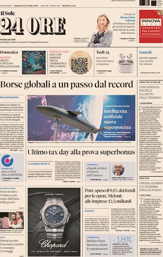 - Apertura con titolo "Borse globali a un passo dal record". Spazio a "Ultimo tax day alla prova superbonus"