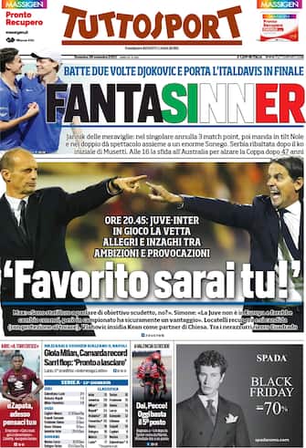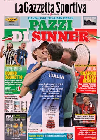 - Apertura con titolo "Pazzi di Sinner". Davis: oggi Italia in finale. Spazio a "Juve-Inter, round scudetto"