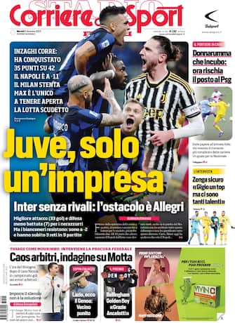 - Apertura con titolo "Juve, solo un'impresa". Inzaghi corre: ha conquistato 35 punti su 42. Il Napoli è a -11. Il Milan stenta. Max è l'unico a tenere aperta la lotta scudetto