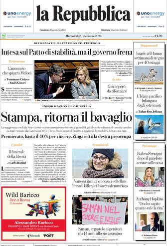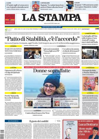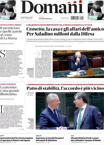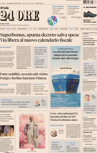 - Apertura con titolo: "Patto di stabilità, c'è l'accordo. Intesa tra Francia e Germania, oggi l'Ecofin. Sì di Giorgetti, ma serve il via libera della maggioranza"