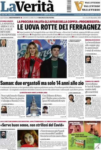 - Apertura con titolo: "Le uova rotte dei Ferragnez. La procura valuta gli affari della coppia 'progressista'"